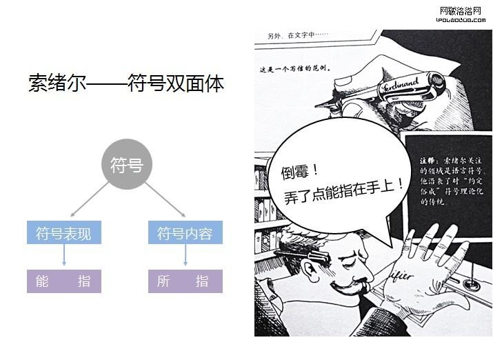 索緒爾與皮爾斯是符號學研究領域的先驅者,索緒爾的結構主義符號學為歐洲符號學研究奠定了基礎概念,他將符號學分解為能指(Signifier)和所指(Signified)即指稱物和被指稱物兩個部分,也就是形式與內容。