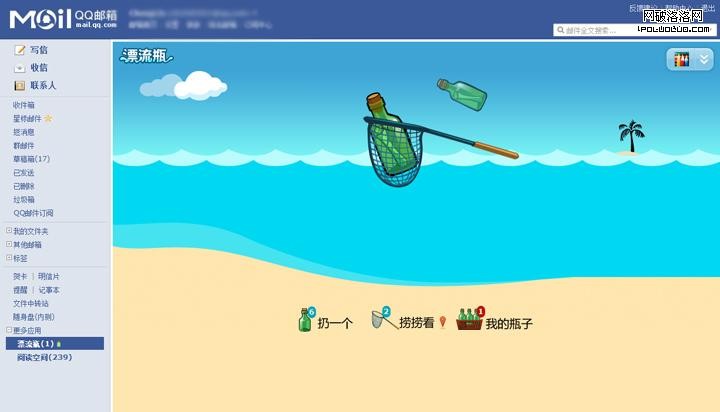 QQ郵箱漂流瓶—貼心的情感化設計(界面和瓶子等物件都采用手繪表現)