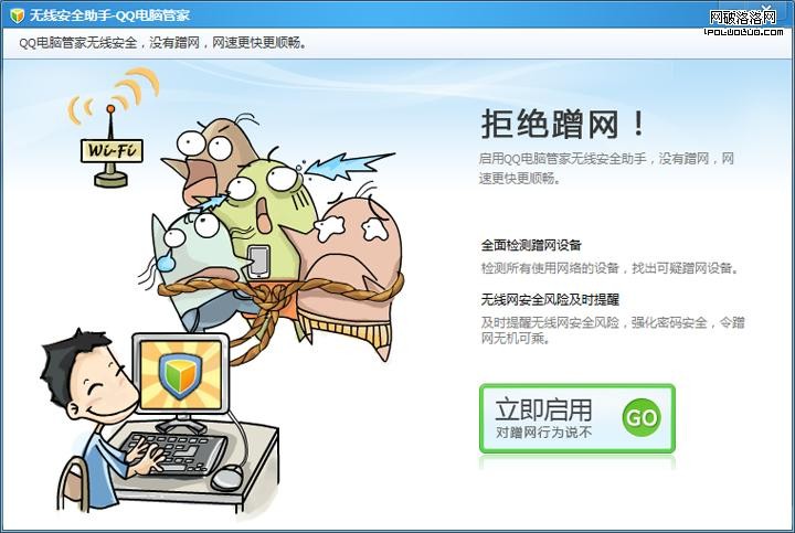 QQ電腦管家無線安全助手,極其有趣幽默的漫畫風格,因趣味性帶動用戶的情緒化反映。