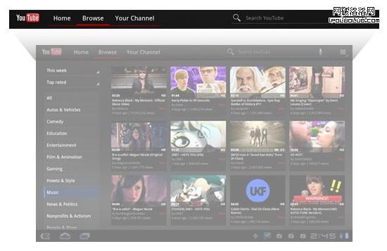 Google的YouTube成為Android的應用程序設計典范是理所當然的事情,它展示了上文提到的所有設計模式和UI元素。為了更好地體驗這款程序在蜂巢系統中的表現,請先下載並運行它吧。