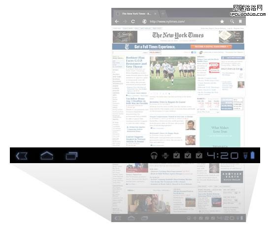 Android略顯笨重而又固定存在的系統欄對設計師來說似乎是個障礙,但它也有一個好處:將iPad中被“返回”按鈕固定占用的位置解放了出來。蜂巢系統中的“返回”按鈕設計在全球都統一適用。