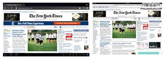左圖是在典型的10英寸Android平板電腦上的橫向視圖,右圖是在iPad上的。