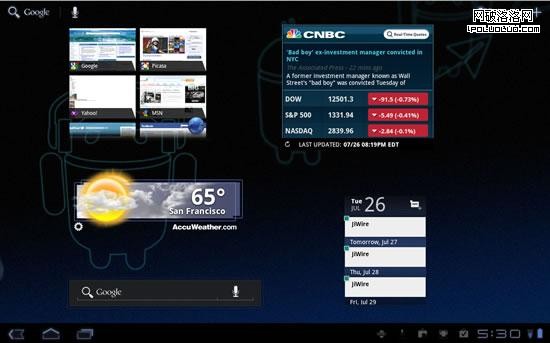 iPad用戶對Android中的控件會感到新鮮。顧名思義,控件就是一些小的通知欄和快捷鍵,用戶可以在設置它們啟動屏幕上的顯示。控件可以被設置為堆棧視圖、網格視圖和列表視圖,現在,Android3.1當中,它們還可以調整大小。