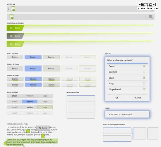 UI元素的采樣,來自Google I/O 2011 PPT放映中的一頁