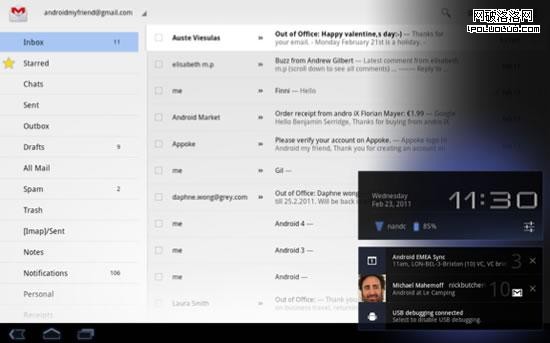 區別於iOS系統只是將簡單的通知信息推送到屏幕上,蜂巢系統的通知信息量比較豐富,並且它是通過屏幕右下角的彈出(我們稱之為“toast”)將通知送到你面前。這一點很像Mac OS X中的Growl。你可以改變通知欄布局,從文本到圖標到可操作按鈕都可以自定義設置。