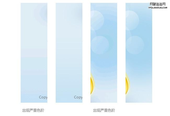 由於手機硬件的不同和系統本身的限制,程序貼圖後,含有漸變的圖在不同手機上,可能會出現不同的顯示效果。也許在google N1 上正常顯示,在moto裡程碑上就出現明顯色階。這時,需要調整設計圖片,盡量避免過大或過細的漸變,在漸變圖形裡加入斜紋理,也會得到較大的改善。