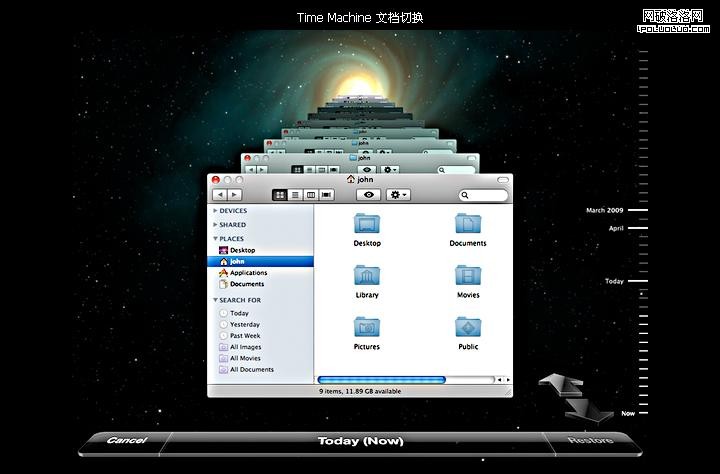 在頁面布局發生變化時,使用恰當的動畫可以使變化顯得不那麼唐突,向用戶解釋剛才到底發生了什麼以及所處狀態的變化。例如蘋果的Time Machine在切換不同時間的文檔預覽時,會有前後堆疊的動畫效果,以更好的呈現先後邏輯關系。