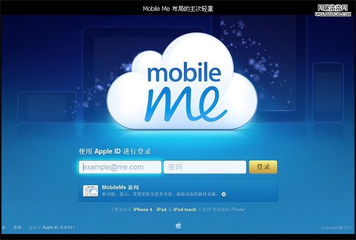 信息的主次輕重,可以通過比例、顏色、聲音等來對比呈現,以保證用戶不會被雜亂無章的信息分散了注意力。例如蘋果MobileMe的大器設計,巨大的icon占據了大半個屏幕、制造最強的品牌感染同時明確用戶身處何方,登錄框、產品介紹鏈接按鈕占其次,登錄方式說明、相關頁面鏈接最弱,主次關系隨著用戶來到頁面→最常用操作(登錄與查看功能)→獲取補充信息的順序遞減。