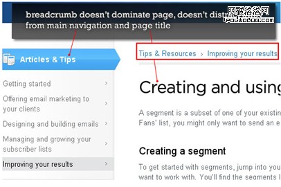 因為他們通常是水平方向和白風格,面包屑不需占用頁面上很大的空間。這樣做的好處是,他們幾乎沒有內容過載方面的負面影響。
