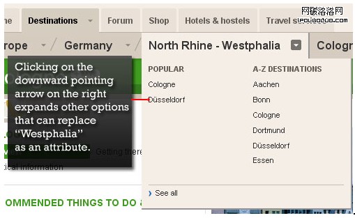 Lonely Planet也有一個彈出的面包屑導航,您可以在其中更改屬性。