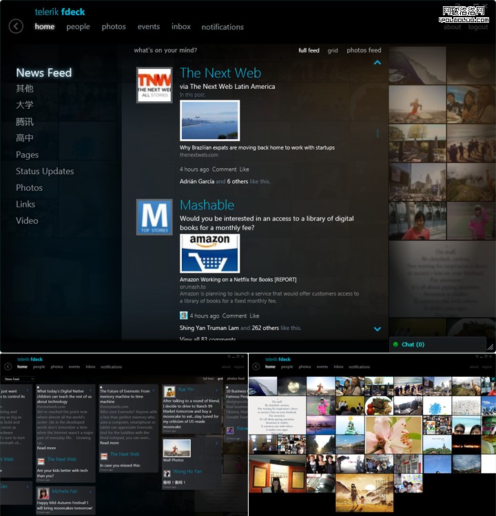 嚴格說來,這不只是一個“概念設計”,而是一個已發布的beta版桌面客戶端——Microsoft Client for Facebook Beta。不過因為它的交互和視覺表現上都與傳統fb大相徑庭,而且亮點多多,所以在這裡一並提出。