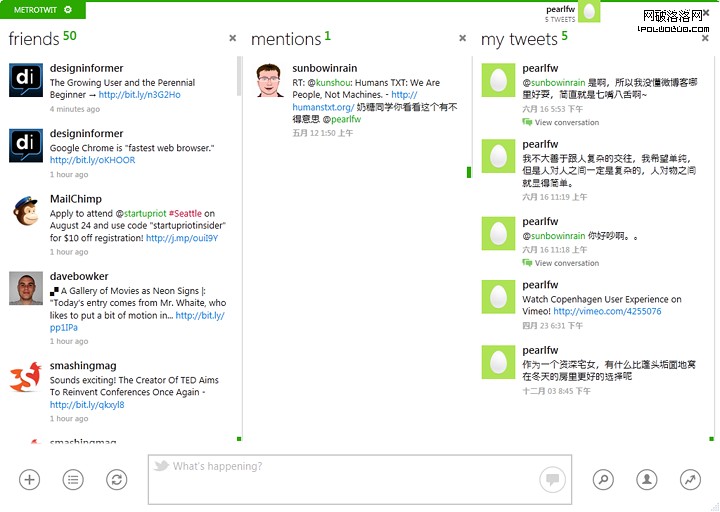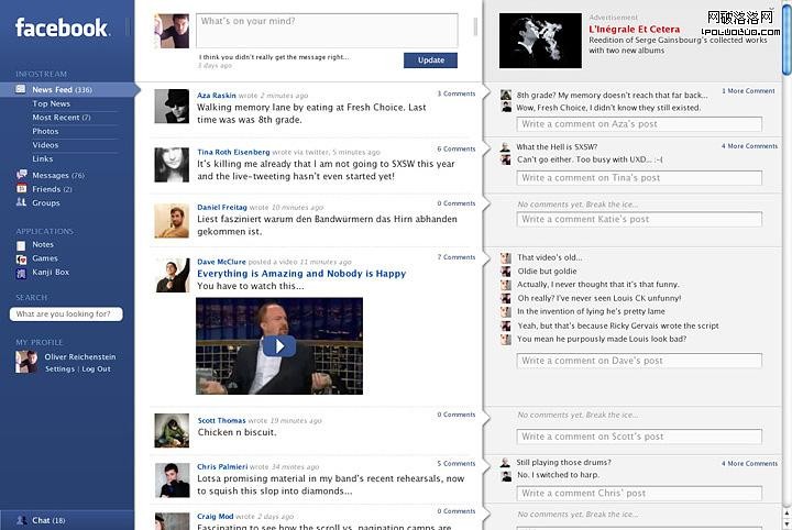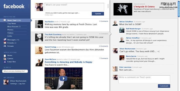 設計非常具有前瞻性,後來Twitte也采用了這種方式,兩欄折疊展開。相比fb,twitter其實更適用這種方式,因為fb強調好友間的互動,而twitter更強調信息的快速流動。