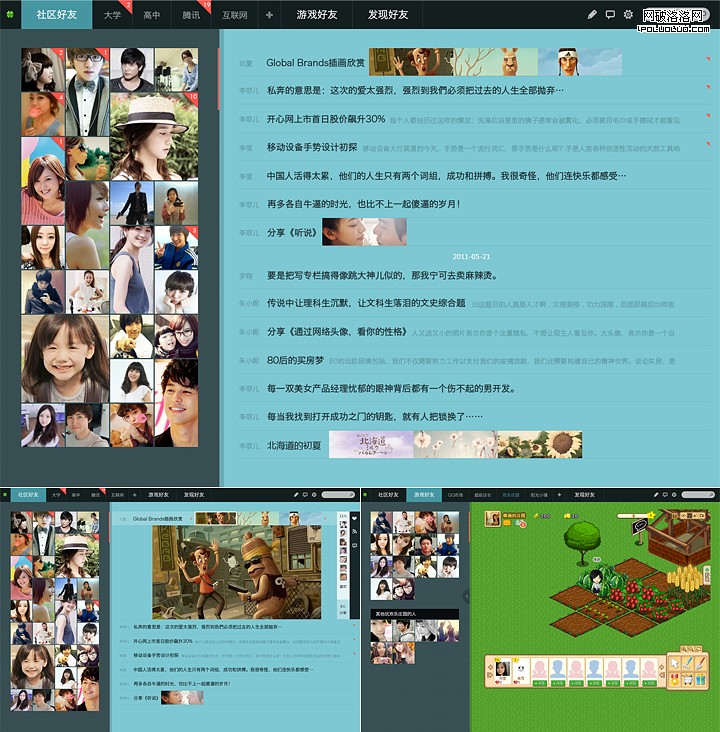 今年4、5月,我抽業余時間嘗試著對朋友網做概念設計,將理想中的SNS通過設計稿表達。由於拋開了平日做設計需求的種種限制,過程非常開心,設計師brella、wendy也一起出謀劃策。雖然還存在著許多問題,但在此分享出來,希望能起到拋磚引玉的作用。