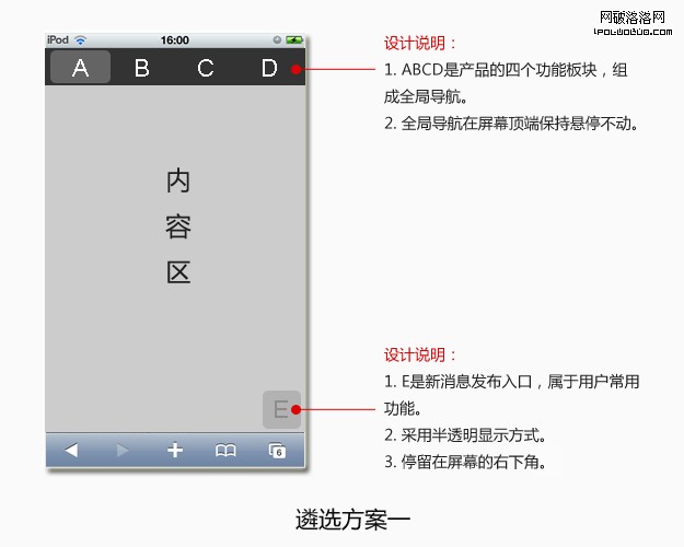 最近在做iphone端Web App的項目。由於產品形式新穎,技術環境不成熟,公司給與了較寬松的研發時間。在一個月的交互設計階段,每個環節都得到多次討論推敲,我從中感悟頗多。導航系統的設計是一個比較典型的點,拿出來與大家分享討論一下。