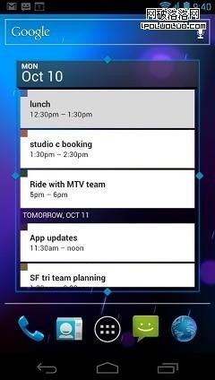 Android4.0繼承了3.0的設計多任務、豐富的通知、可定制的主界面、可調整大小的控件、用於交互和分享的互動性元素。應用程序的結構日趨成熟,幾乎沒有發生變化,看看系統主要界面是如何體現其設計目標:簡潔、美觀和更為智能。