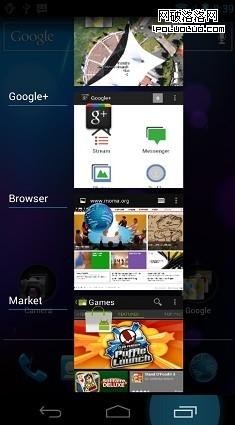 多任務界面改為任務截圖顯示,在大屏幕上顯得更為直觀,視覺形式更為美觀。但在手機上一屏只能顯示4個,對於操作效率或許並沒有提升。