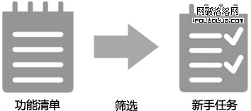 我們首先為產品整理出一份功能清單,然後從中篩選出新手用戶的任務。