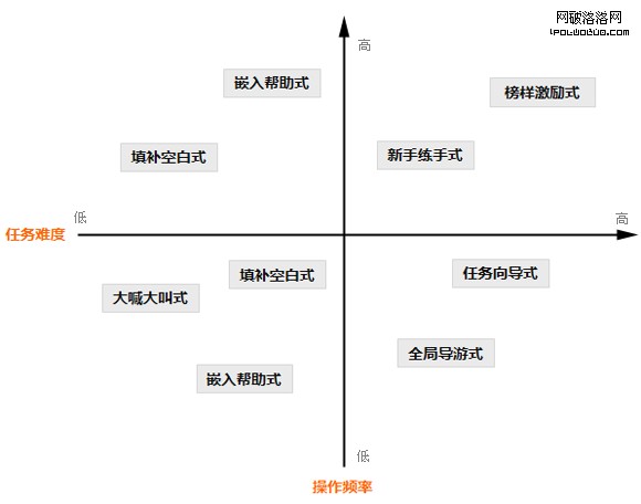 把新手任務的特征和用戶類型按以上方式大致分析歸類之後,接下來就是確定如何在界面上展示這些任務去引導用戶一步步操作下去,也就是任務的具體表現方法了。我們總結出7種常見的表現方法,並且與任務特征和用戶類型逐個去對應。