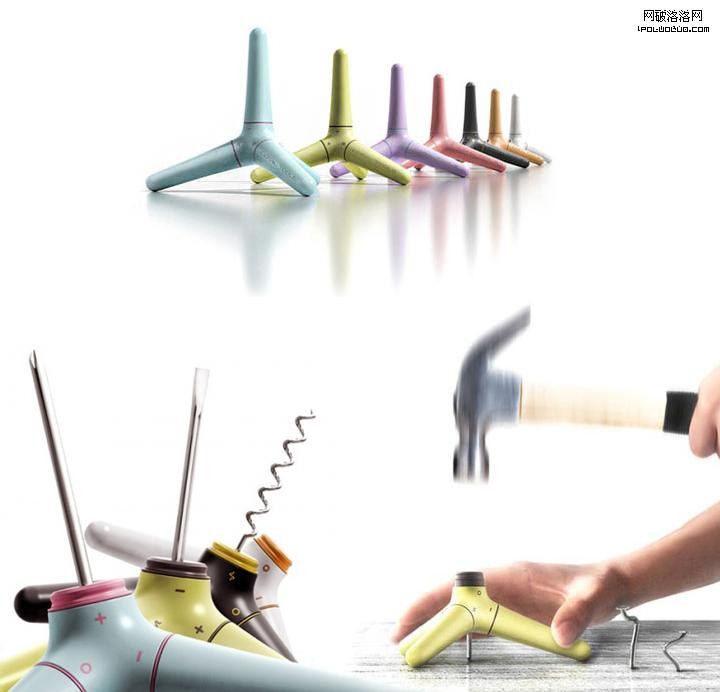在家免不了要安裝東西修修補補的時候,這款名為“Coral”的家裝工具,由設計師Jinyoung Choi設計,當不使用的時候可以給它蓋上帽子保護它,而在使用的時候,三角的定律能發揮它的很大作用。包括了螺絲刀、開瓶器。尤其是打鐵釘的時候很好的保護了手,自由力度的發揮將其穩固筆直的安全打進去。能解決活兒不少問題呢。這個創新的設計漂亮又實用,這麼一套豐富多彩的多功能工具有沒有讓你有新鮮的感覺呢,有想置換家裡那套的沖動嗎?呵呵。