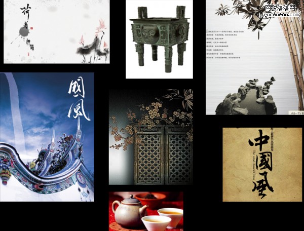 標志性的元素:水墨風格、書寫體、古代物品(瓷器,鼎之類)