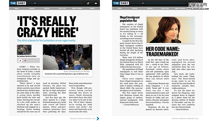 閱讀這樣的應用程序,你會感覺跟閱讀報紙一樣,同時你也會發現,比閱讀報紙更加輕松,每一頁的排版幾乎不重樣,翻閱這樣的雜志探索感更加強烈。