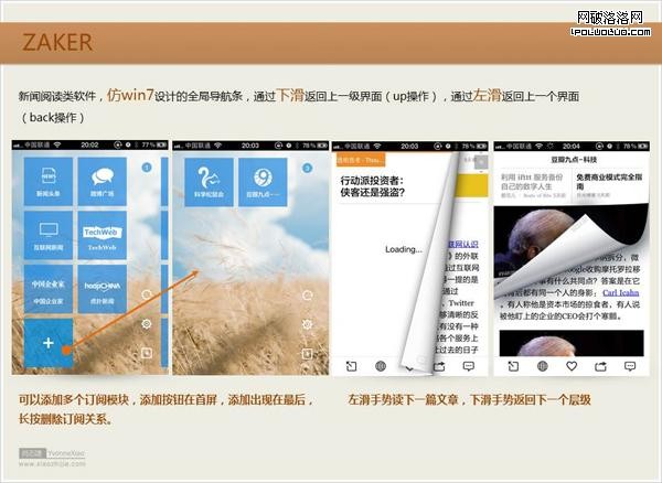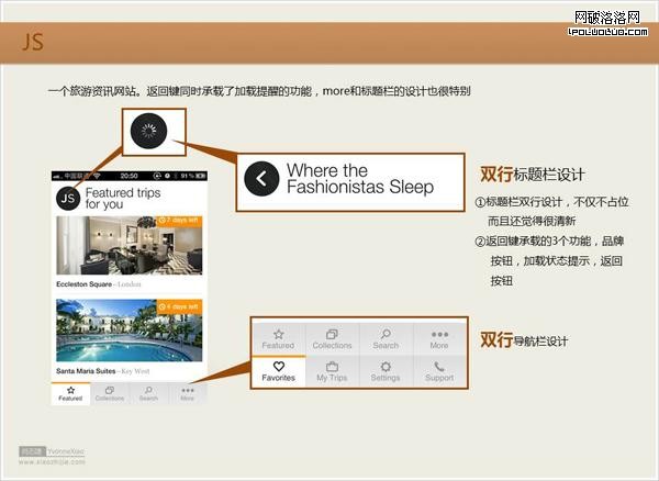 總而言之,不要因為蘋果的用戶規范就對自己過於的約束,優秀軟件必定帶有一定的創新性,清晰的導航,快捷的返回,短暫的等待頁面,是每個優秀軟件應該具備的品質,我們是為了保障這些品質而作設計,而非為了遵循規范而設計。要不然那便不是設計,而是標准化生產了。