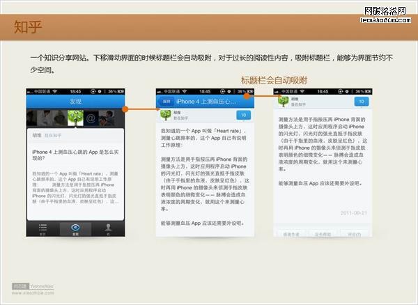 手機的界面有限,對不影響界面內容的控件,悄悄的幫助用戶隱藏,無疑是一個很貼心的操作。這裡絕對知乎和PIICTU的導航欄的隱藏設計給自己的體驗很好。