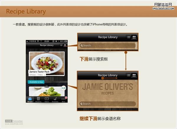 另外Recipe Library的搜索框隱藏,就挺有風度的,並且繼續上移展示軟件名稱的設計,能夠很好的提升自己的品牌感知。