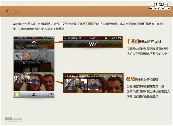 With/的層疊設計和透明效果,讓人對界面信息的排布重新思考。