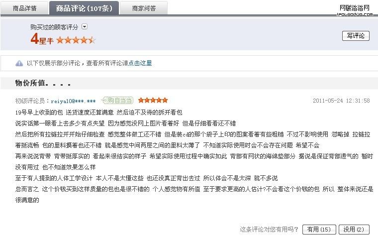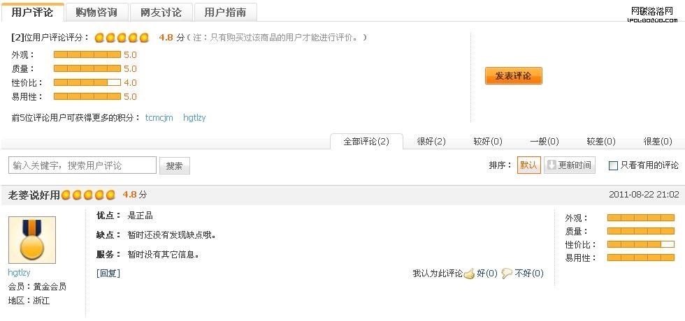 有些網站把評論中的好中差評分開展示,用戶可以只看差評,了解這個商品的缺點,也可以只看好評,看看它究竟好在哪。做的再細致一點,就把每條評論的格式規范的很仔細,優點、缺點、使用心得等分條列出來。這樣做一方面引導用戶在評論的時候,就有側重點,而不是漫無目的的評論;另一方面,看評論的用戶也可以一目了然。