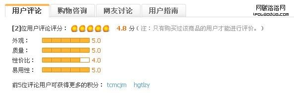 新蛋也是從外觀、質量、性價比、易用性四個方面來對商品進行打分。