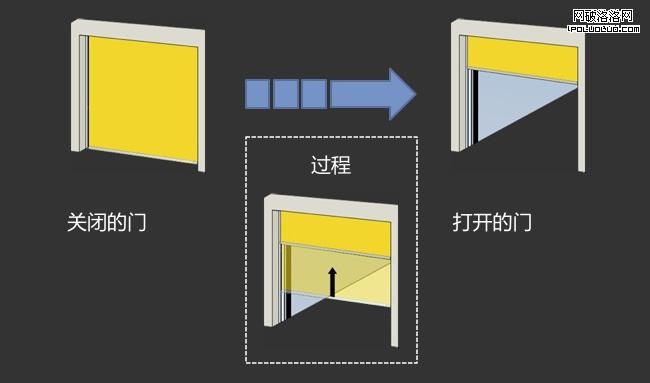 關閉的門 > 打開的門 。過程:從下往上收起。