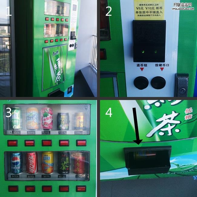 飲料機的操作步驟:投幣 > 選擇飲料 > 拿到飲料