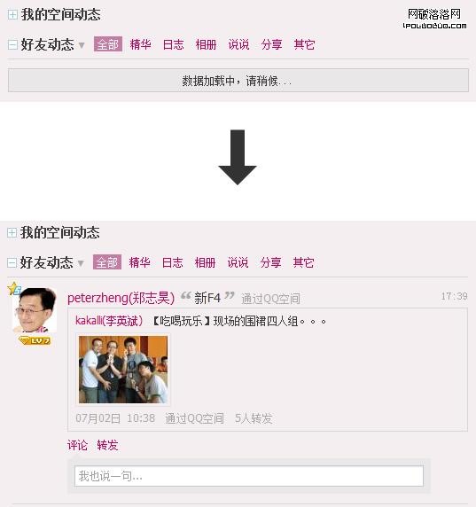 Qzone導航項切換的例子,可以添加等待過程的提示,避免用戶重復點擊或等待時間過長離開。