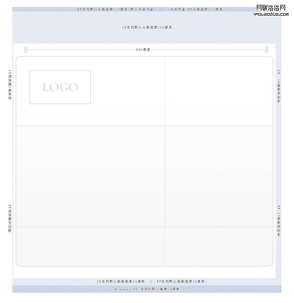 首先在這裡想要再次為新人提下,現在霸占互聯網最小分辨率的還會是1024用戶(特別是中國),加之IE、FF主流浏覽器的比例,由此特地整理了一個解說小圖。