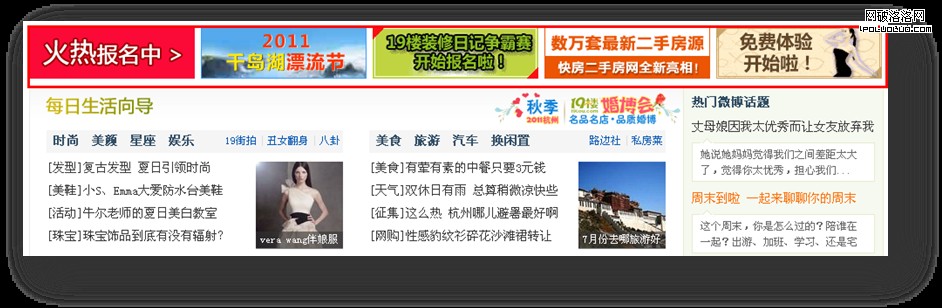 右邊側欄的banner廣告和推薦位,這個位置的banner廣告推薦效果非常好,可以引起用戶注意,同時不引起用戶反感。這個在左右邊欄各個欄目下都可以考慮增加。
