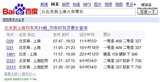 在圖3中,需求分析需要識別出該query具有查找火車時刻表的需求,並解析出起點站為北京,終點站為上海。進而直接為用戶展現出從北京到上海的火車時刻表,極大地方便了用戶獲取相關信息。