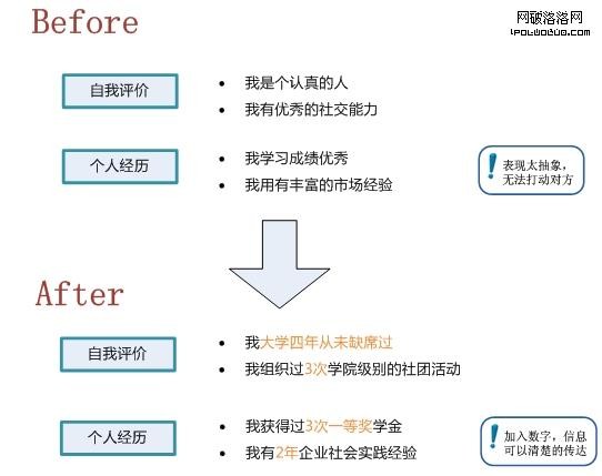 首先,在描述數字的神奇力量之前,先舉一個貼近我們生活的實例。大家還記得剛畢業時,汗流浃背的穿插在招聘現場投遞簡歷的情景麼?相信每一個畢業生都經歷過那緊張又焦慮的時刻。那時手頭那張薄薄的簡歷是我們的決勝的籌碼,於是寫簡歷自然成了一個技術活,令人痛苦卻又不得不認真對待。那麼如何簡潔明了,卻又不遺漏任何一個閃光點的在簡歷裡傳遞給招聘者所有有價值的信息呢?讓我們來看看數字的力量: