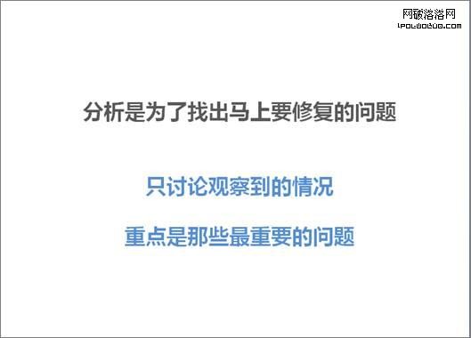 在完成測試後,需要主持人和觀察人員趁著記憶猶新的時候快速地將有用的信息整理出來,可以采用便利貼,也可以專門空出一塊白板或者建立一個文檔。總之把用戶相關的操作,提出的問題,和我們自己發現的問題迅速地寫出來。但,不要快速下結論。