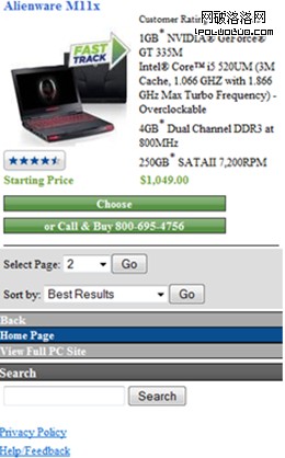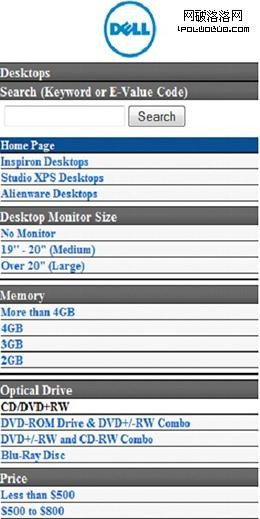 在網頁中,我們經常會看到一些促銷,營銷或者導航的圖形信息。如圖7所示的dell站點,設計者經常需要設計一些促銷或營銷的圖形,如圖8所示、公司LOGO始終保持著導航的目標,通過它,用戶可以進入主頁。而在移動站點設計中,應該減少這些圖形,原因有二:其一,一些移動設備並不支持和傳統網頁站點一樣顯示方式;其二,移動屏幕較小,顯示內容有限,除此之外,過多的顯示內容會降低移動設計的運行速度。