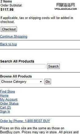 桌面站點提出使用多種導航方式,如圖9 Best Buy 站點。一些全局性的導航可以保持站點的一致性,而其他一些情境導航會隨著用戶使用站點的不同而不同。在移動站點中,全局導航是最常見的導航方式,如圖10 Best buy的移動站點就是非常典型的例子。