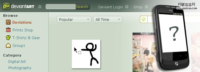 以www.deviantart.com為例,她已經是無數設計師生活的一部分,在個人電腦上我們擁有她,在手機上我們也需要她。