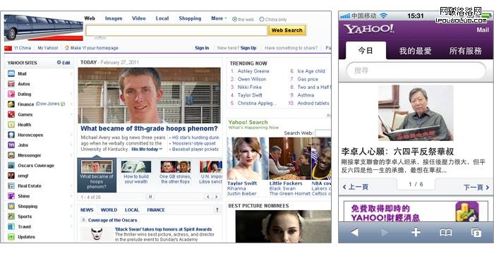 www.yahoo.com 的頁面效果 與m.yahoo.com的頁面效果