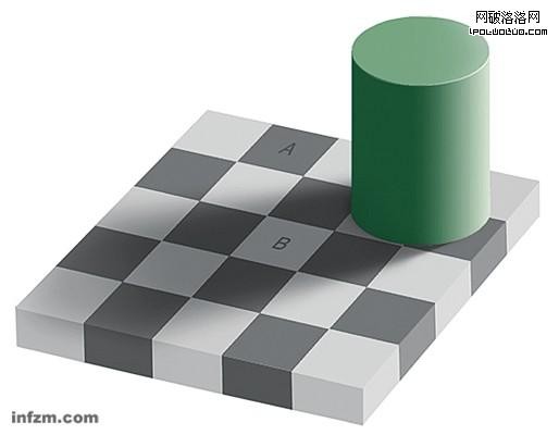 麻省理工Edward Adelson設計的視覺差異圖,你能看出A方格和B方格的灰度是相同的嗎? (南方周末資料圖片)