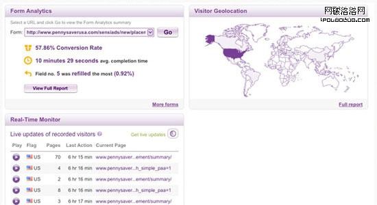 讓我們首先從 ClickTale說起。它是一個很好的研究/分析工具,能向你呈現出用戶是如何與你的網頁交互的。它允許你追蹤網頁浏覽行為並得到一些基本的分析報告。你也可以通過Google Analytics得到免費的這樣的分析報告。它的優點在於它的熱圖、點擊追蹤、滾動距離(用戶滾動到你網頁的什麼位置)、記錄用戶和你的網站/產品交互的時期。有了這些,你就可以看到用戶是如何浏覽你的網站的,並且從一些設計很好的網站也可以獲得分析數據。
