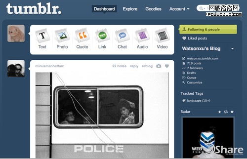 歡迎大家留言或者通過微博 @web20share 一起來分享探討對於Tumblr的理解。