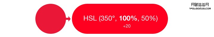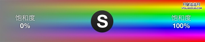 HSL的S(saturation)分量,指的是色彩的飽和度,它用0%至100%的值描述了相同色相、明度下色彩純度的變化。數值越大,顏色中的灰色越少,顏色越鮮艷,呈現一種從理性(灰度)到感性(純色)的變化,如下圖: