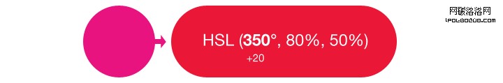 我們來做一個基於HSL的調色實踐。想想開篇提到的“海棠紅”,那應該是一個介於洋紅和紅色之間的,性感嬌艷的顏色。我們可以假定它在色相環H上的角度是330°左右,飽和度較高,明度適中,看看那是什麼顏色?
