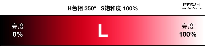 HSL的L(lightness)分量,指的是色彩的明度,作用是控制色彩的明暗變化。它同樣使用了0%至100%的取值范圍。數值越小,色彩越暗,越接近於黑色;數值越大,色彩越亮,越接近於白色。