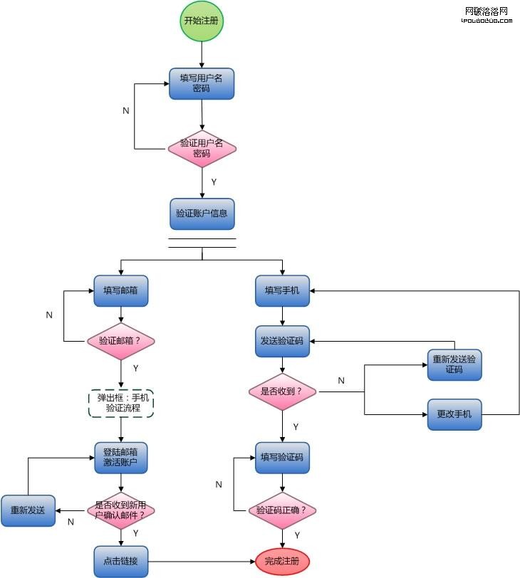 2)作為分析過程的工具,流程圖展示的是邏輯關系,表明工作如何完成。區別於線框圖和原型,所以不需要太精細。